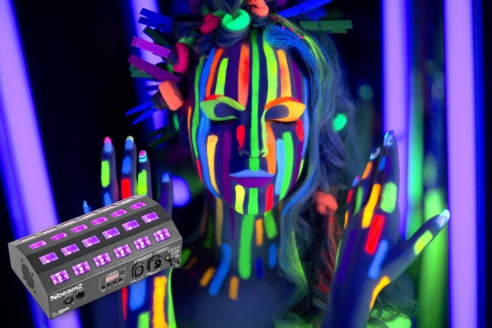 A strong and powerful LED Flood fitted with Ultraviolet LEDs. The UV LEDs are divided into 4 separately controllable segments giving you the possibility to create runway effects. Because the LEDs are positioned in a slight angle you can create a very wide spread of light and cover a large area.